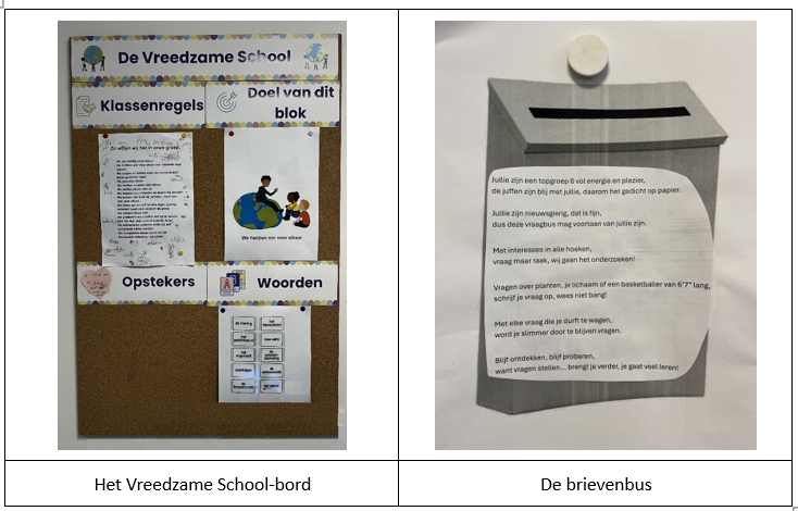 We werken op onze school met een programma dat De Vreedzame School heet. De bedoeling daarvan is dat we beter met elkaar om leren gaan en dat we het in de klas en op school samen leuk met elkaar hebben. We lossen soms zelf ruzietjes op en leren verantwoordelijkheid te dragen, niet alleen voor onszelf maar voor de hele klas.