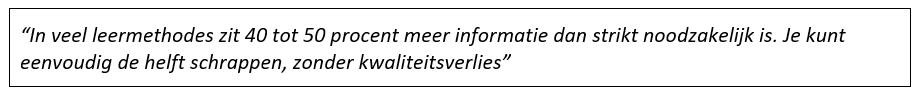 Die vrije ruimte is er eigenlijk altijd al geweest, maar die hebben leraren zelden zelf ervaren. Een belangrijke oorzaak daarvan is, dat er in het onderwijs uitgebreid gebruik gemaakt wordt van methoden en die bieden 40 tot 50 procent meer informatie dan strikt noodzakelijk is (Janssen, 2025). Dat betekent dat vrije ruimte bij het gebruik van onderwijsmethoden niet door leraren ervaren en gebruikt wordt, maar ingenomen wordt door methodelesjes.